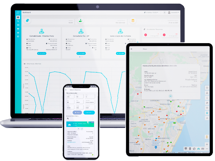Veja suas empresas no mapa ou use o Radar empresarial e conheça todas as empresas presentes no raio escolhido.